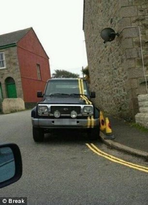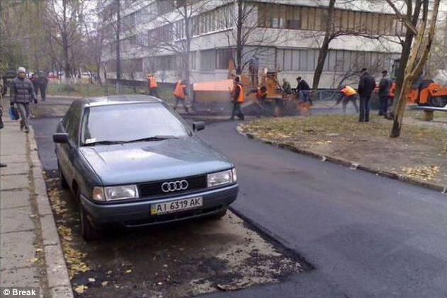 sa nu fie Photoshop … nu de alta … dar masina care traseaza nu pare ca s-a urcat peste cea din imagine, pe vertical au vopsit doar parbrizul … de far au uitat