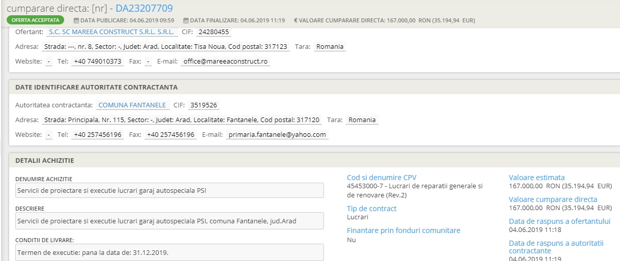 Gospodar fiind, Otrăcan Emil Nicolae s-a gândit să construiască din banii comunei un garaj pentru autospeciala PSI, lucru care ar fi în mod normal de lăudat, problema este că a plătit, pentru proiectarea și construirea garajului, 35 000 de euro, aceleiași firme care a mai primit din banii comunei aproape 120 de mii de euro pentru reparații la școala din comună, SC MAREEA CONSTRUCT SRL