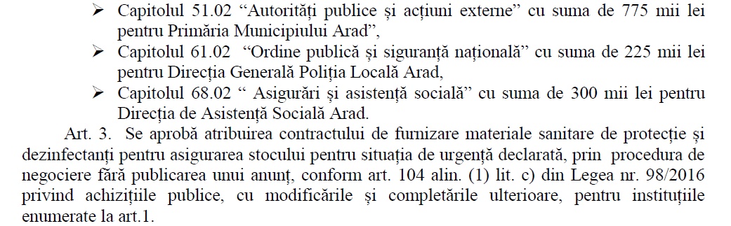 • Aș vrea mai multe informații, cum de a ales Primăria Arad să facă o achiziție de un milion de lei de la farmacia Christiana ? prin negociere directă, fără licitație, ținând cont că derularea contractului era pentru trei luni, nu puteau licita măcar o săptămână ?