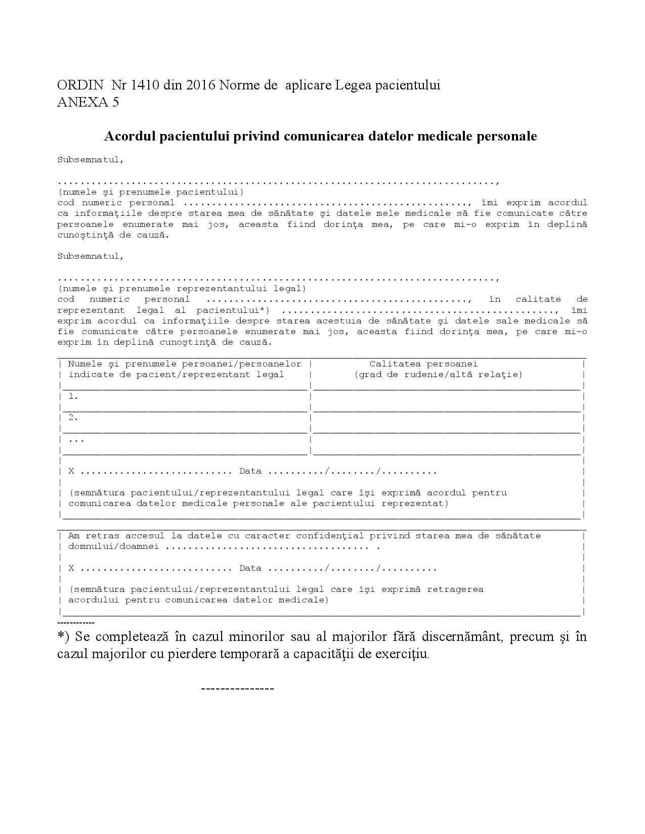 Acordul pacientului privind comunicarea datelor medicale personale