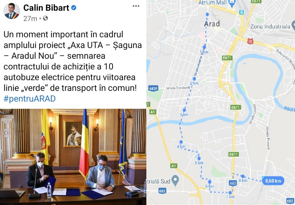 Deși nu s-a început lucrul și nici nu există un termen clar de începere sau finalizare a „liniei verzi” de transport în comun pe care ar trebui să circule autobuzele electrice, administrația PNL Arad a și semnat contractul de achiziție a celor zece autobuze turcești la un preț total de peste 24 de milioane de lei, autobuze care vor fi „bătrâne” când vor circula pe noul traseu care include și un nou pod peste Mureș, … dacă vor circula vreodată, dar măcar avem cu ce ne lăuda … sau au avut de unde fura …