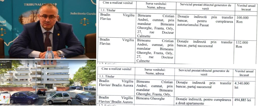 Dumnezeii pe pământ, ei împart dreptatea în Arad, azi tot despre Virgiliu Flavius BRADIN, vicepreședintele Tribunalului Arad, a primit peste 5 milioane de lei donație de la cumnatul din Franța … pute a cinste