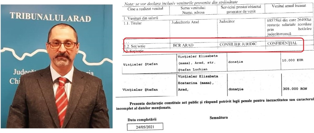 în 2018 au câștigat împreună echivalentul în lei a puțin peste 60 de mii de euro, de sărmani ce erau au primit și o donație de 10 mii de euro de la mama lui Vințieler Ștefan, slăbuț, alți judecători din Arad au primit donații de milioane de lei sau o vilă