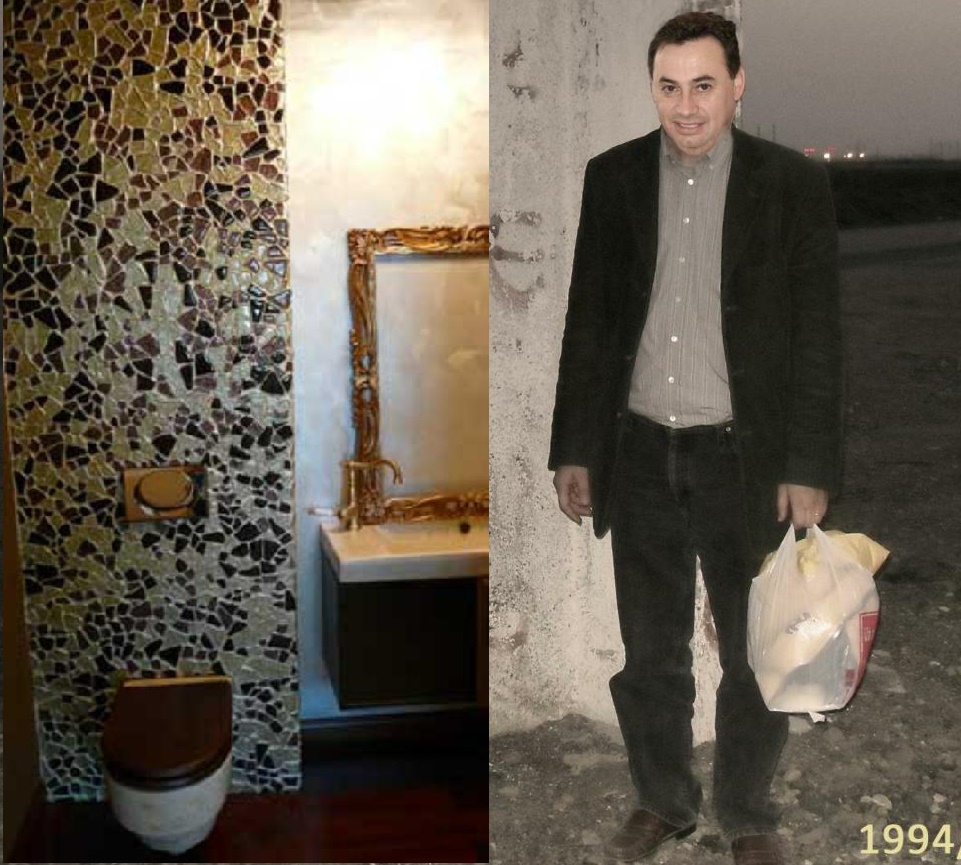 Pentru că așa e frumos, îi spunem și noi un sincer La mulți ani !!! … cu executare, de cadou nu poate fi vorba, furându-ne, și-a făcut cadouri pentru vreo zece vieți, doar vila în care locuiește are finisaje interioare de peste un milion de euro, ceea ce este mult pentru unul care a venit în Arad cu o plasă de un leu și nu a lucrat nici o zi la privat … pe lângă vitralii scumpe, candelabre și mobilier de lux, și-a mai îndeplinit un vis din copilărie, are toaleta în casă, probabil la insistențele fostei soții, Ela Falcă, pentru că dacă era la mintea lui își făcea wc-ul tot în curte