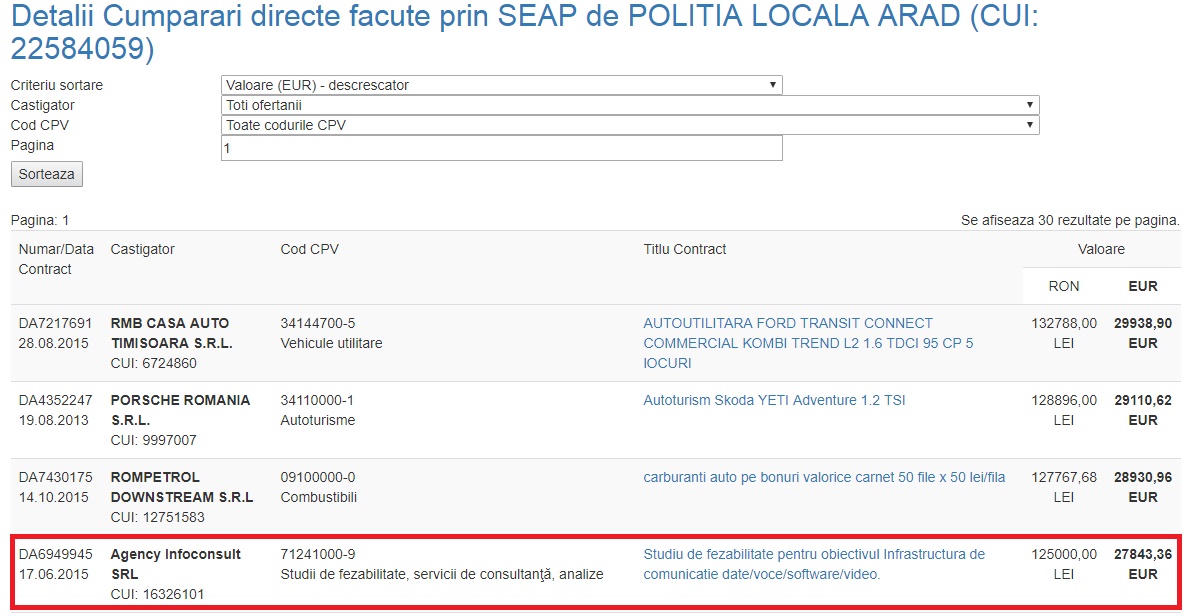 Au plătit aproape 28 000 de euro pentru un studiu de fezabilitate ??? !!! Asta pe lângă alte cheltuieli ”umflate”, laptopuri, consumabile pentru imprimante. Nu am găsit până acum nici o instituție publică din Arad care să nu aibă cheltuieli ”umflate” (poate îmi arată cineva o instituție ”curată”), oare nimeni nu se autosesizează ?