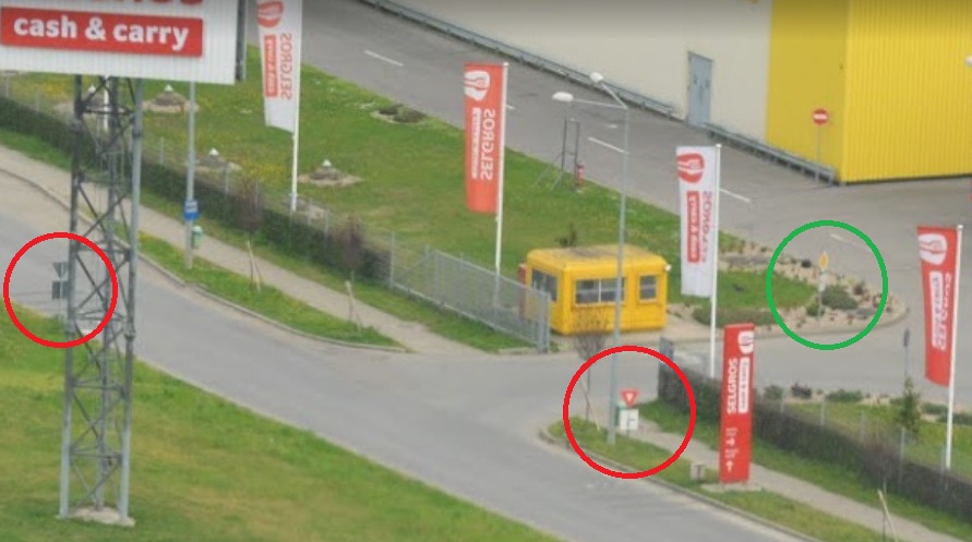 Ca răsplată pentru nenumăratele sponsorizări, și invitații la petrecerile organizate de magazin, bineînțeles că magazinul Selgros trebuia răsplătit, prin urmare autoritățile locale au montat indicatoare rutiere de cedează trecerea pentru autovehiculele care trec pe lângă magazinul Selgros, acordând prioritate autovehiculelor care ies din parcarea magazinului. Pentru ca potențialii clienți care trec prin fața porții de intrare a magazinului să încetinească, poate poate se gândesc să viziteze magazinul, administrația locală a montat pe asfalt și marcaje rezonatoare